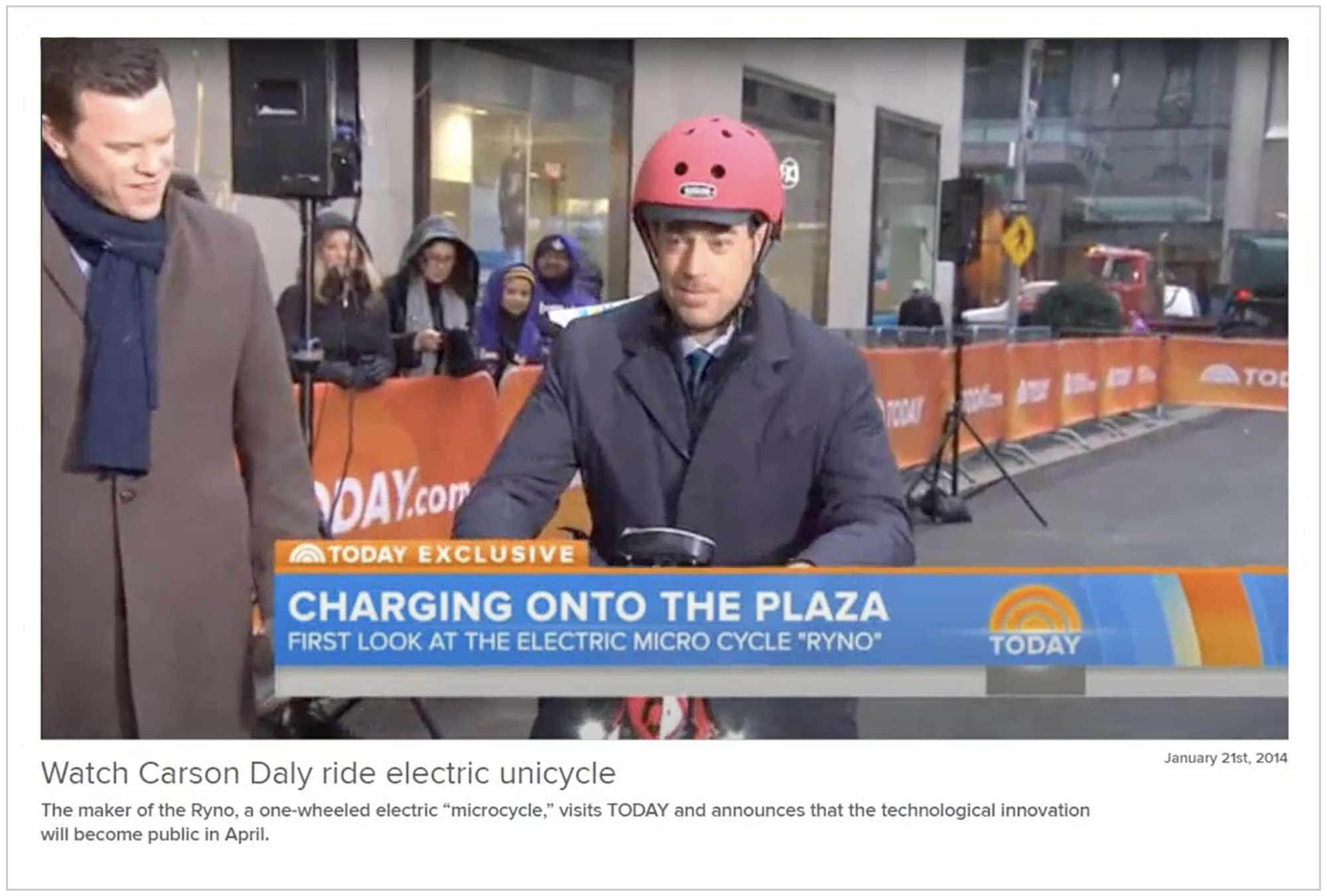 As a contractor with Brink Communications, I created and executed a media tour for Ryno Motors in New York City. This effort resulted in media coverage for Ryno in the New York Times, the Today Show, the Washington Post, Business Insider, Wired, Popular Science, Digital Trends, The Verge and Worth Magazine. The media value of this campaign was measured in the millions of dollars and increased interest in the Ryno with investors.